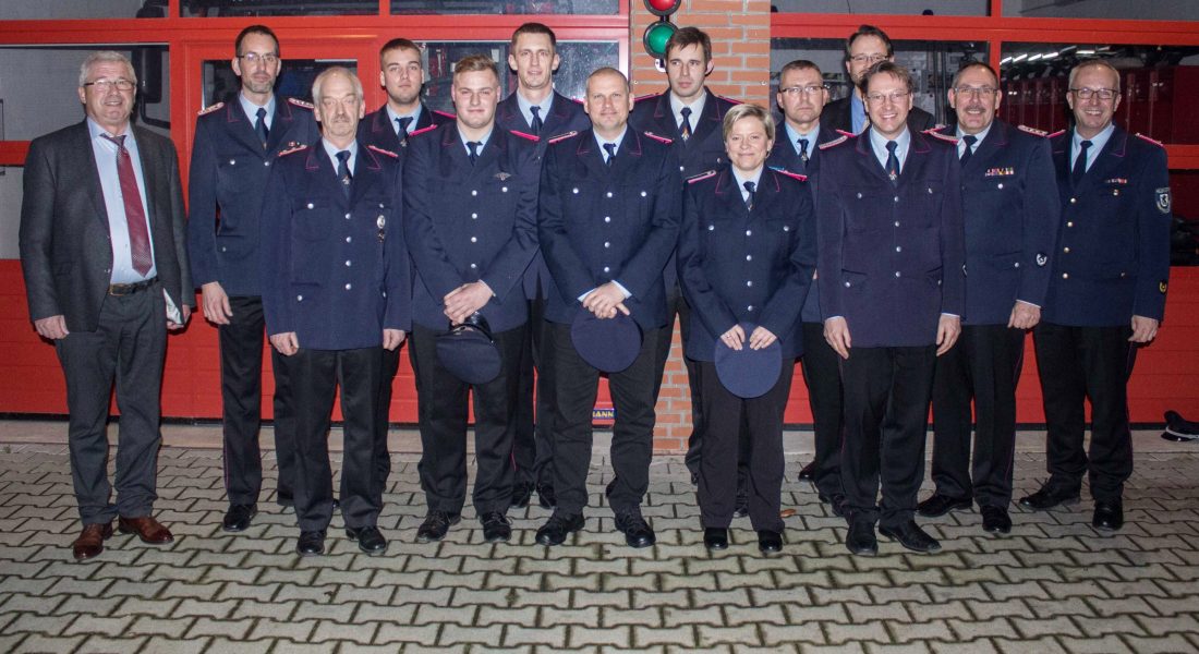 Drei Feuerwehranwärter konnte Rolf Ahrens-Wiegel als stellvertretender Gemeindebrandmeister zum Feuerwehrmann ernennen. Beförderung gab es überdies für Tim Jessin sowie Sönke und Daniela Schoth zum Oberfeuerwehrmann, bzw –frau. Thomas Merten konnte zum Hauptfeuerwehrmann befördert werden. 40 Jahre gehört Gerd-Herbert Zeyn bereits der Feuerwehr an; er konnte sich anlässlich dieses Jubiläums über eine Ehrung mit dem niedersächsischen Ehrenabzeichen freuen.